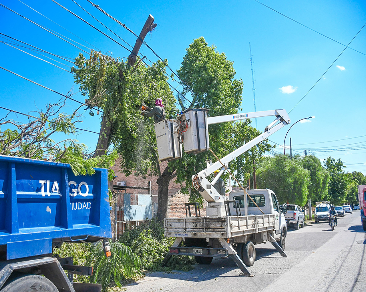 Recortan árboles dañados por los fuertes vientos
