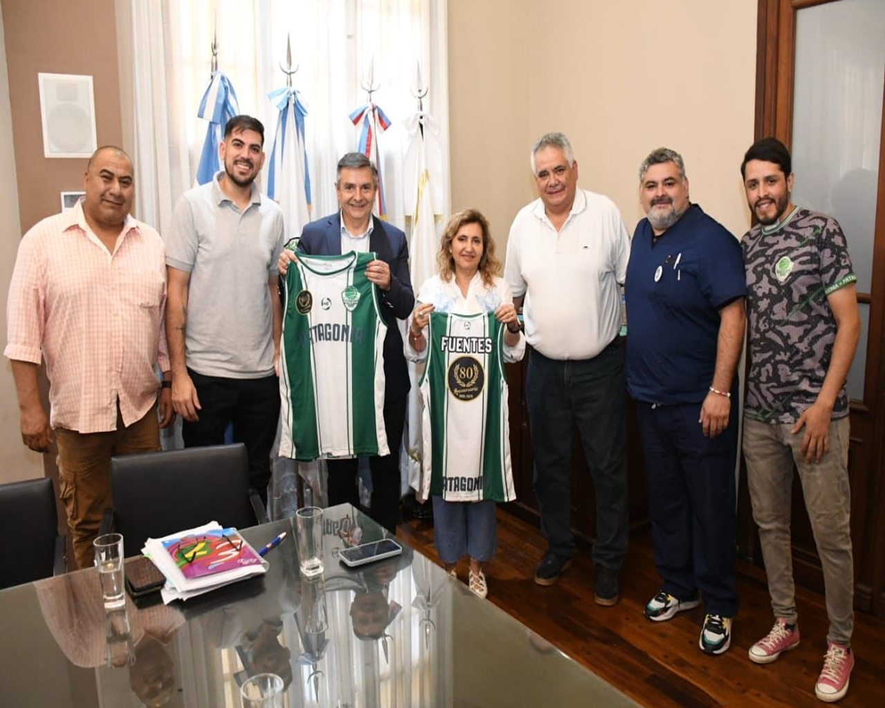 La intendente con la comisión directiva del Club Patagonia
